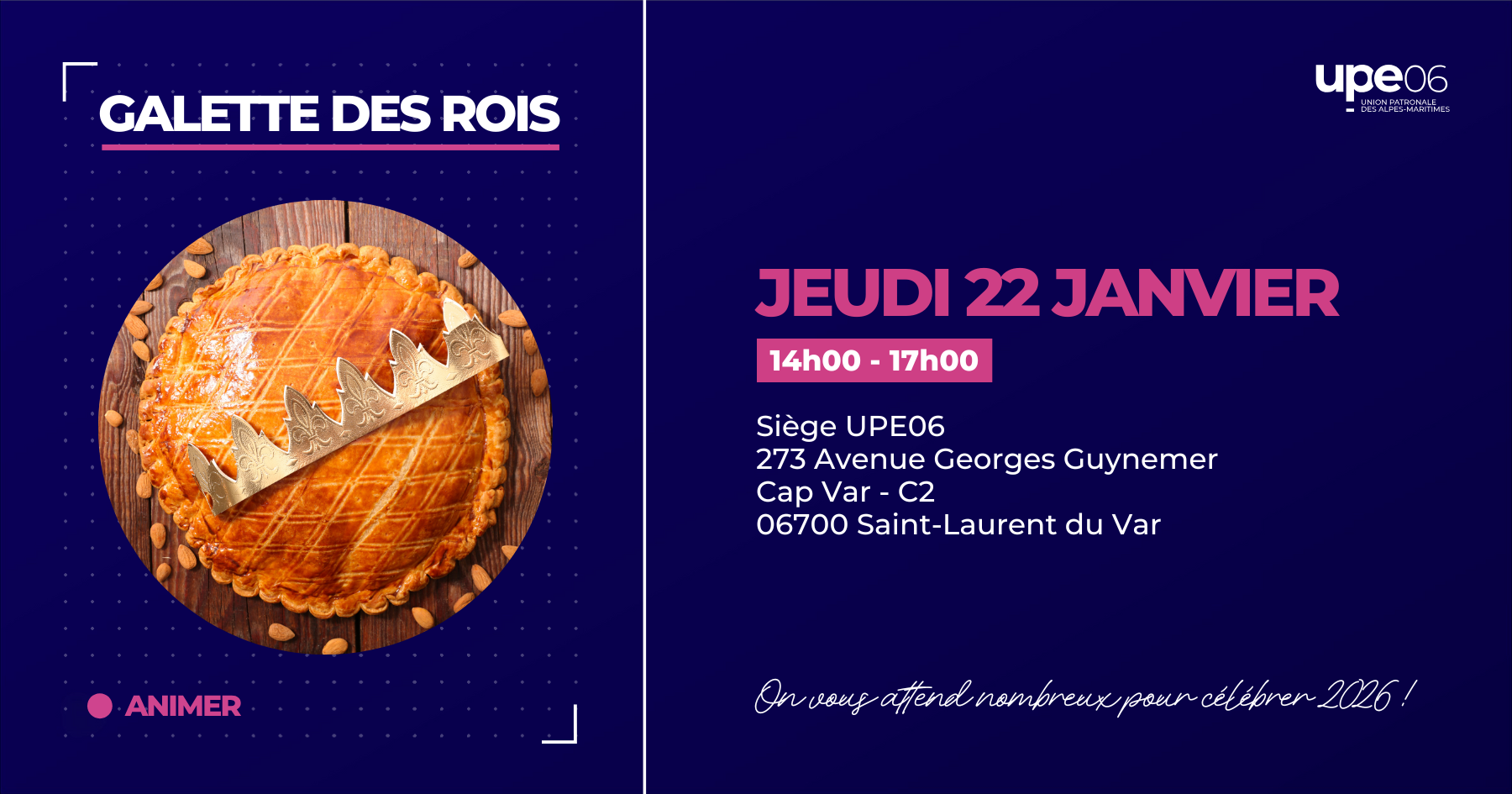 Ce moment, à la fois chaleureux et gourmand, sera l’occasion de se retrouver, d’échanger sur l’année à venir et de renforcer nos liens. Vous pourrez également découvrir en avant-première l’annuaire UPE06 2026, qui sera officiellement dévoilé et distribué sur place. Indispensable pour valoriser notre réseau, il constitue surtout un véritable levier pour développer vos relations et vos projets.
